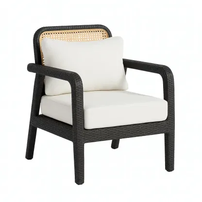 Matériau : Structure en rotin synthétique, dossier en cannage tissé, coussins en tissu polyester